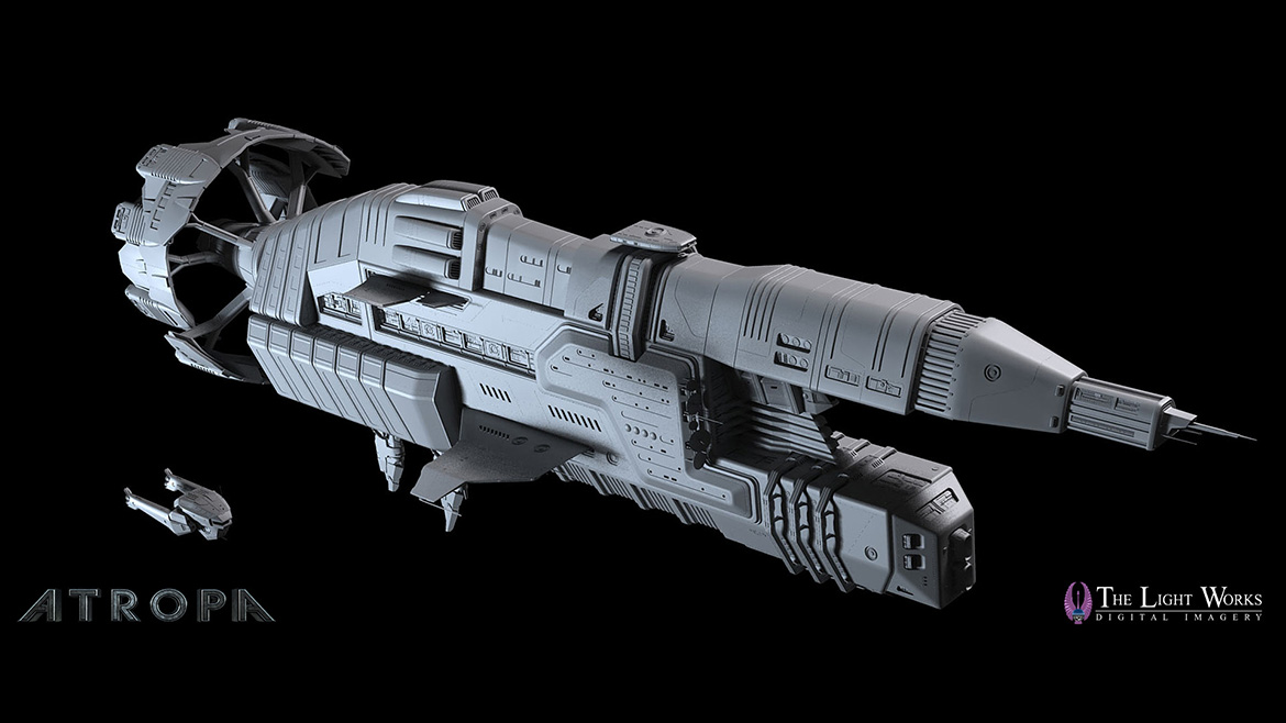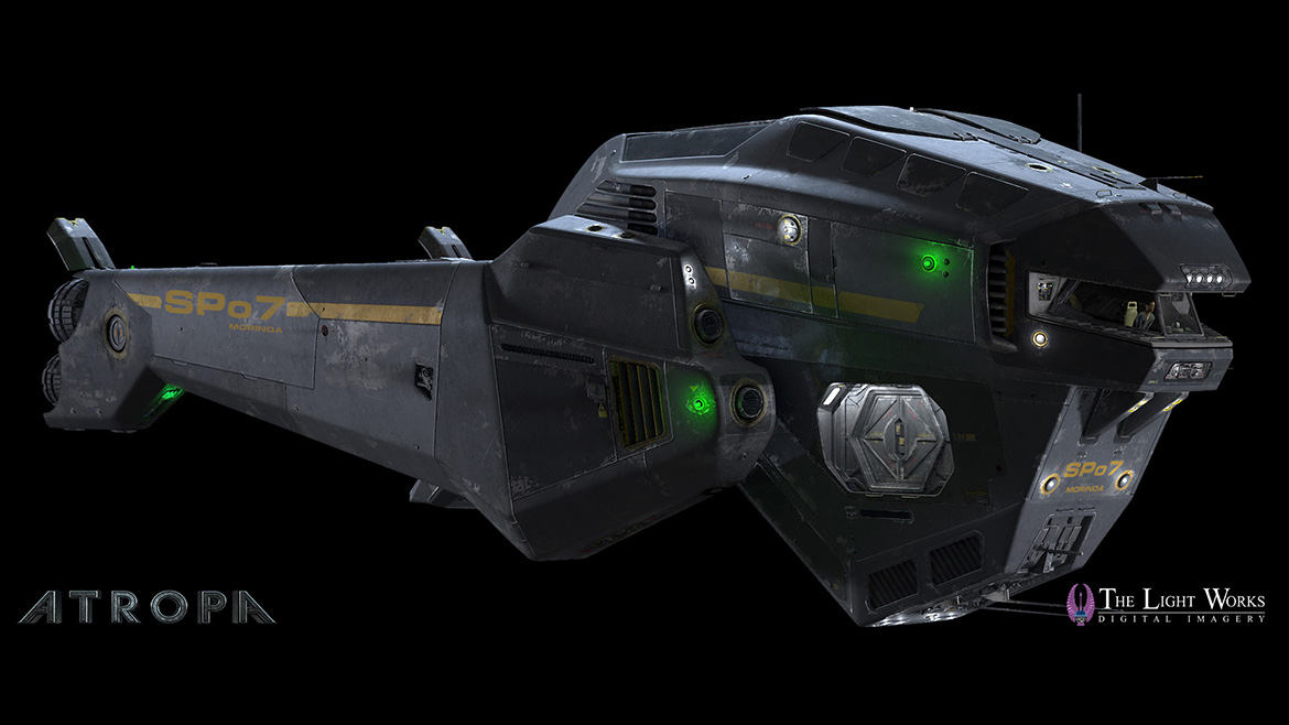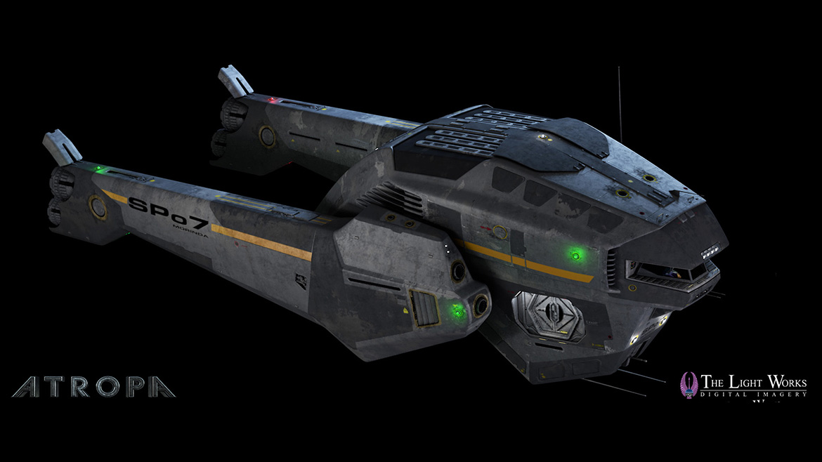 We were responsible for all the space shots, including the two highly detailed ship models, with a virtual cockpit and virtual pilot. It was important that the visible cockpit works in all shots, so sometimes we would use real footage of the actor, sometimes a virtual cockpit and virtual actor, and sometimes a transition between both. For the remaining episodes we also developed virtual sets like the engineroom and the cargobay as well as virtual counterparts of the actors for the space-scenes.